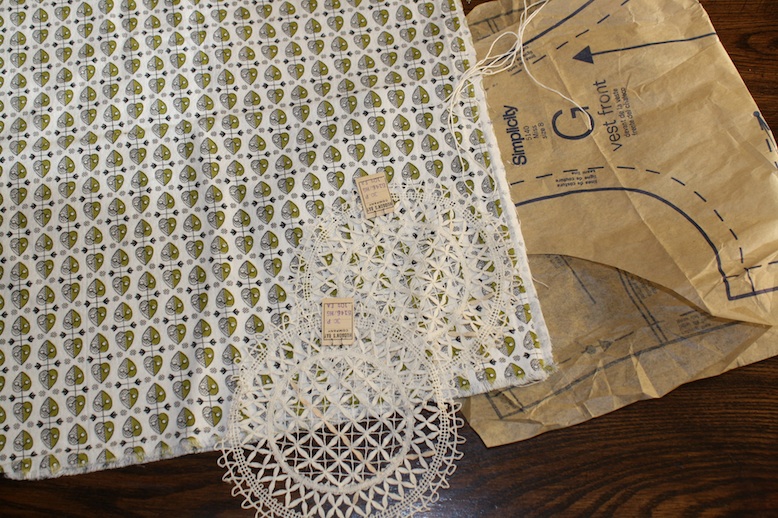 The fabric arrived wrapped in a pattern remnant tied with string, and two old lace doilies were thrown in as a gift. What a lovely touch. This is what makes shopping Etsy so great. And oh heck, so addictive.